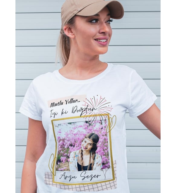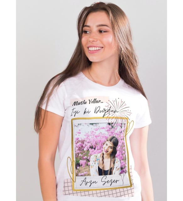 - Kişiye özel yazılı ve fotoğraf baskılı beyaz tişört, kendi tarzınızı yansıtmanın en eğlenceli yoludur.